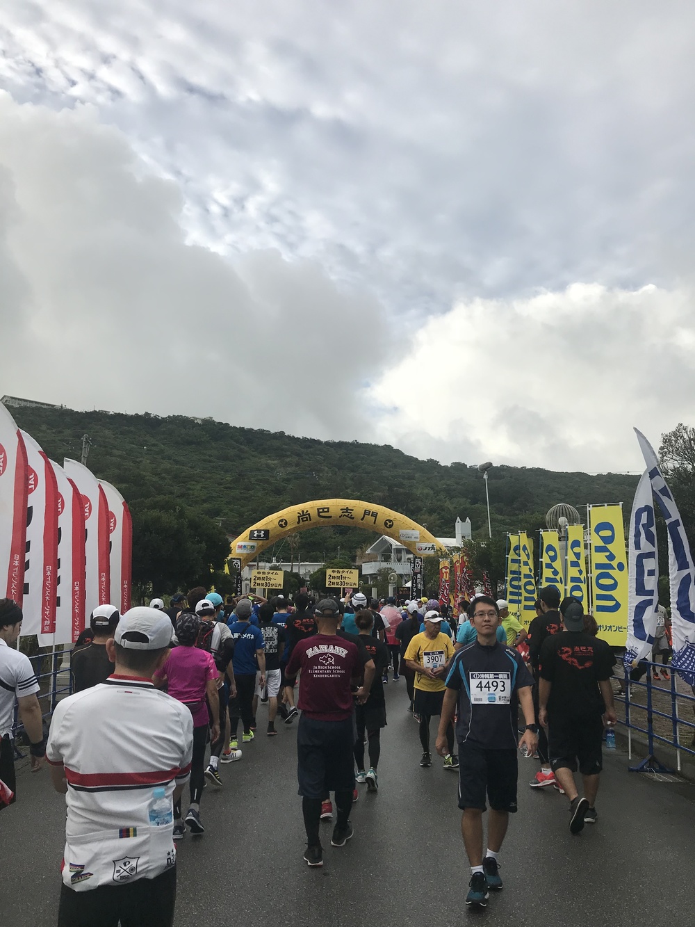 コース序盤の新里坂(しんざとびら)は高低差150Mの坂で、当大会のスローガン「新里坂(しんざとびら)を制する者は覇者となる。」の通り名物の一つとなっています。 中盤には眼下に綺麗なオーシャンビューが望める「ニライカナイ橋」が疲れを一気に吹き飛ばします!