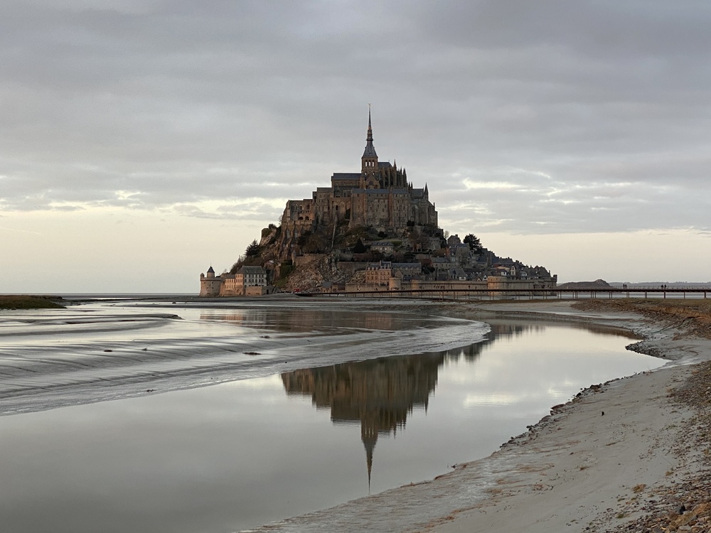 モンサンミッシェルの電動バスではなく、せっかくなのでジョグで! 徐々に近づいてくるモンサンミッシェルに感動しました!