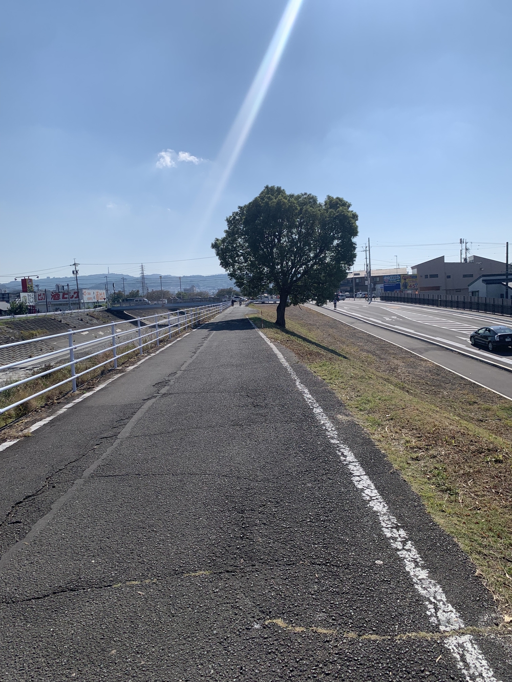 自動車の往来が無い為走りやすいです。長尾川土手沿いの遊歩道です。
