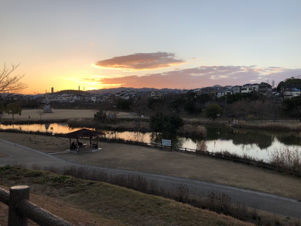 寝屋川市駅前から打上治水緑地公園へ。治水緑地公園は春には桜がきれいに咲きます。