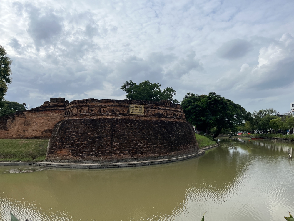 チェンマイの観光名所、ターペー門の内側を走るコースです。歩道はほぼ全ルート上にありますが、時間帯によっては人がひっきりなしに歩いているので、通行の際は時折車道側に出たほうが無難です。その際は車の往来に気をつけてください。 信号は殆どないので基本ほぼノンストップで走れますが、外門と内門が接続している箇所が複数あり、その際は接触しないように注意が必要です。その点に気をつければ、チェンマイ中心部の雑踏感を垣間見ながら、気持ちよくランニングできます。 チェンマイはバンコクほどは暑くないですが、それでも湿度の影響で蒸し蒸しと暑く感じるので、暑さ対策は必須です。
