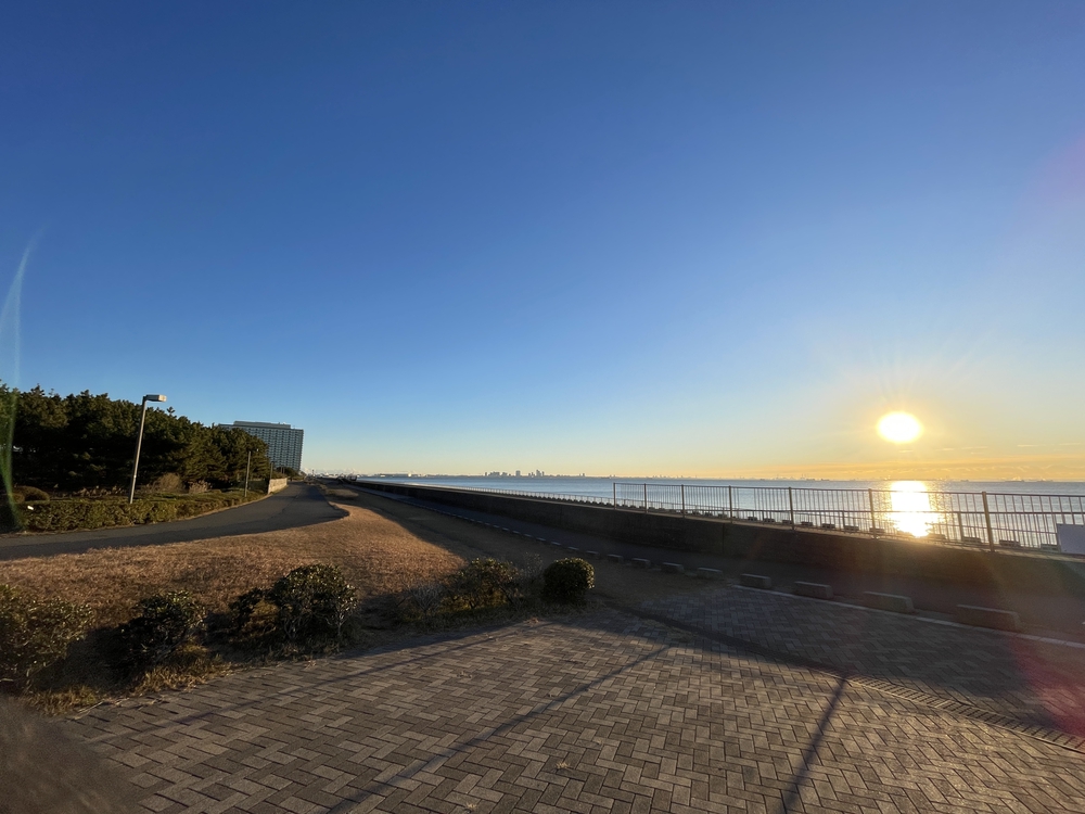 ディズニー旅行のためにオリエンタルホテルに宿泊しました。信号が少なくて景色も良くてとても良いジョギングコースでした。 朝は綺麗な朝日が見れます。