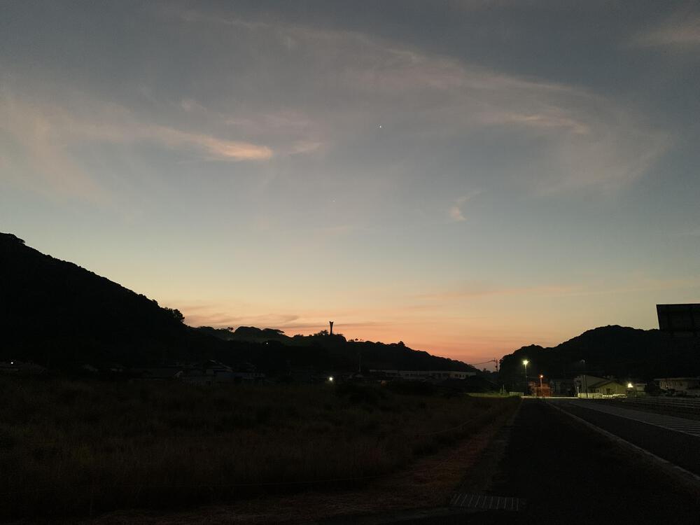 日の出前のハイヤ大橋は海も暗く怖い感じですが、朝焼けは綺麗です。