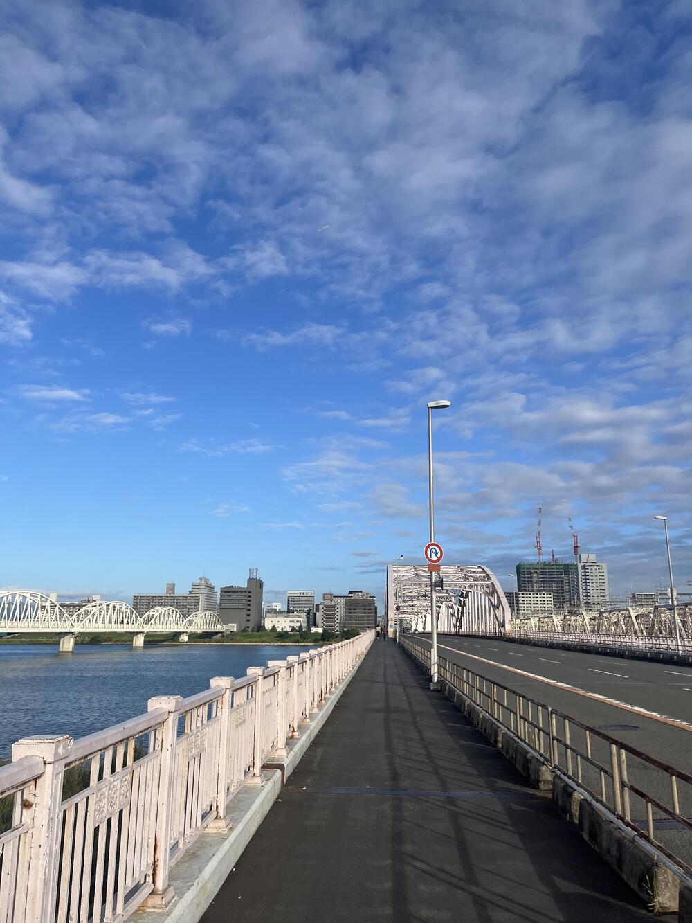 One to Stepから十三小橋を渡り、淀川沿いを走って淀川大橋を通り戻ってくる約9.5km! 天気が良い日の淀川沿いは都会を忘れる気持ちよさ! 道も広いので走りやすいコースです。