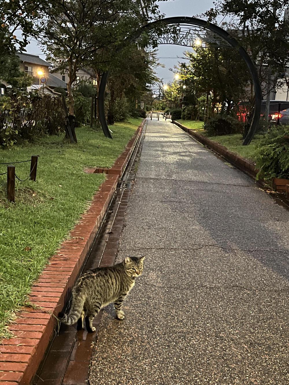 兵庫県明石市 (6.0km)風と緑の出会いの道初日は晴れていたけど最終日は雨☂️です。朝5時35分スタート 雨降っても猫🐱がお出迎え 東屋で雨宿りの猫も…(*ΦωΦ)アハァ…♥鉄道廃線跡の道を進み、ふる里の音楽が聴こえる橋を渡り古代遺跡へ 池や川には水鳥𓅜𓅦𓅪𓅭 色んな生きもの達に出逢える道🌿です(((o(*゚▽゚*)o)))