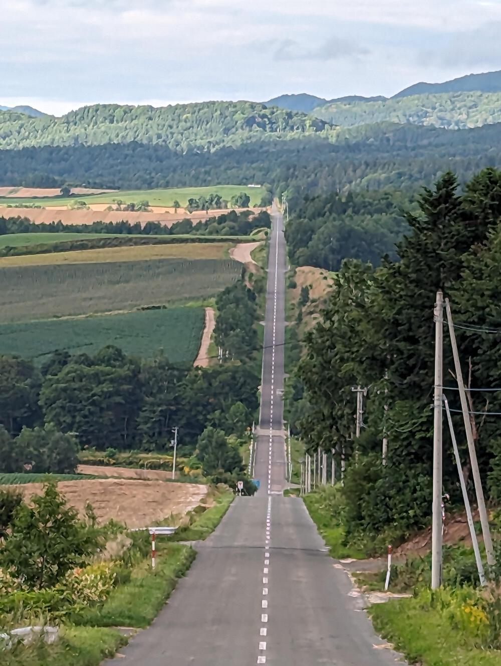 美馬牛駅から出発して、1キロほど走ったところがジェットコースターの道の始発で、さらに写真で見えるところの先端まで約4キロ、それを往復しました。累積標高差は約450mでかなりきついですが、景色は最高なのでやり切った感はかなり味わえます。