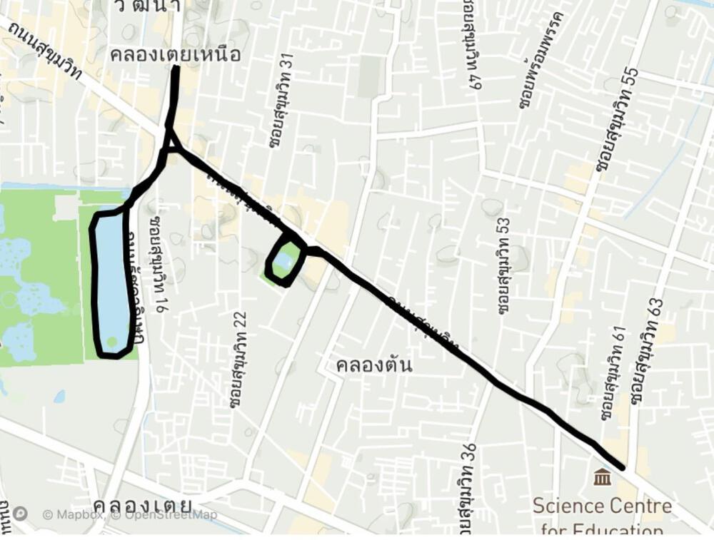 タイはバンコク。BTSのエカマイ駅からトンロー、プロンポン、アソークと、スクンビット通りを走り、アソークのベンチャキティ公園(1周約1.8km)を周回後、プロンポンに戻り、プロンポンのベンチャシリ公園(1周約800m)を周回してエカマイ方面に戻る10kmランです。スクンビット通りは信号も多く、朝は通勤客が屋台で買い物をしていたり、昼間~夕方は観光客が多いので、早朝がオススメ。