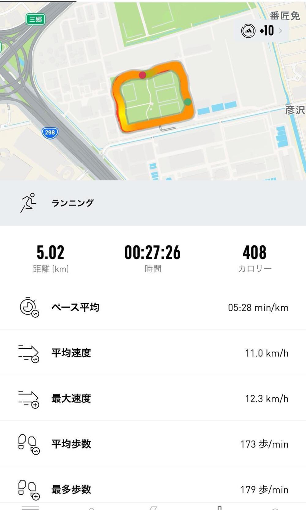 三郷スカイパーク。浄水場の上に作られている、サッカーコートを中心とした芝生広場です。外周をぐるっと1周しても1km弱と、距離は短い周回コースですが、信号はもちろんなく、起伏もほぼなく、歩行者を避けるときも芝生を走れるので、とても走りやすいコースです。浄水場のニオイが少し気になるのは唯一の難点でしょうか・・。