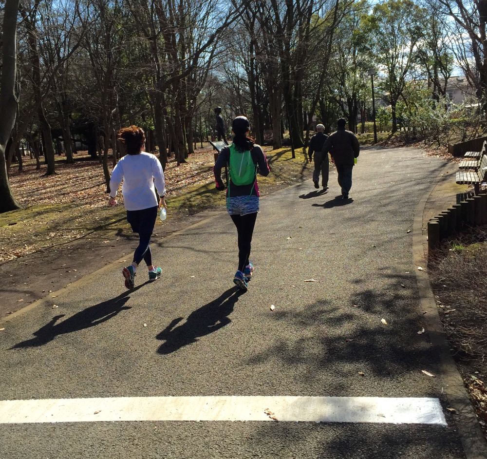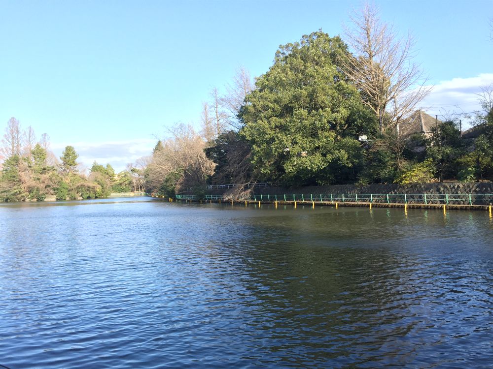 池周り1.2㎞の周回コースです。木の根っこや凹凸がある部分が多いですが、人の数は多くもなく少なくもなく、少人数でのジョギングに適しています。