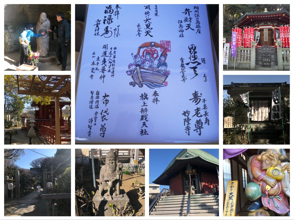 人が多くて走りにくいコースなので、早朝がおすすめですが、拝観するなら開門時間に合わせて始めないといけませんので、のんびりWalk&Runでマラニックしながら走るのが良いでしょう。 寒い時期に回ることが多いと思いますので、はじめにガッツリ走って、後半人が多くてあまり走れない状況になり、風邪などひいてもいけませんし、銭湯などもないため、江ノ島スタートよりも、あまり走れない可能性のある鎌倉からスタートして、おやつ休憩しながら、まわるのが良いでしょう。長谷までまわったら、七福神めぐりは終わりではありません。道は狭いが比較的空いている海岸沿いを天気が良ければ江ノ島と富士山と海を眺めながら駆け抜けます。江ノ島桟橋に来ると、また人が多くて走れないかもしれませんので、ここはWalkのつもりで景色などを楽しみつつ進みます。ここは10分ほどで最後に階段もあるので、長時間寒さに耐えるようなことは避けられるでしょう。最後の江ノ島弁財天を回ったら、江ノ島アイランドスパで汗を流して、海の幸などを楽しむでも良いですね。 http://kamakura-enoshima-shichifukujin.jp/index.htm ・浄智寺(布袋尊) 拝観時間 9:00~16:30 拝観料 200円 ↓ ・鶴岡八幡宮(旗上弁財天社)(弁財天) ↓ ・宝戒寺(毘沙門天) 開門 8 : 00 閉門 16 : 30 拝観料100円 ↓ ・妙隆寺(寿老人) ↓ ・本覚寺(夷神) ↓ ・長谷寺(大黒天) 8:00~16:30(10月~2月) 拝観料300円 ↓ ・御霊神社(福禄寿) 御霊神社への入場は無料ですが、 お面の拝観は有料で100円 ↓ ・江ノ島神社(弁財天) ↓ (spa)江の島アイランドスパ http://www.enospa.jp/