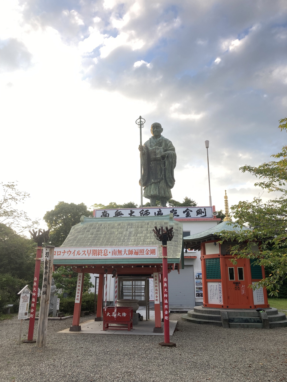 延岡駅から、日本一の弘法大師銅像のある今山大師を登って、西階総合運動公園を経て、帰りは大瀬川河川敷と五ヶ瀬川河川敷を通って駅へ戻るコースです。 弘法大師像の左側に小道が続いていてそこから裏側に出たのですが、住宅街の中でルートが難しいので、今山大師はあきらめるか来た道を戻るかして、駅前のとおりを五ヶ瀬川方面へ走ったほうがよいかもしれません。 西階公園のクロカンコースは勾配が適度なアップダウンが続いていて素敵なトレラン練習コースでした。 木々が生い茂っていて街灯はないので、日没後はヘッドライト必携です。 大瀬川や五ヶ瀬川沿いは、河川敷が整備されていて走りやすいです。