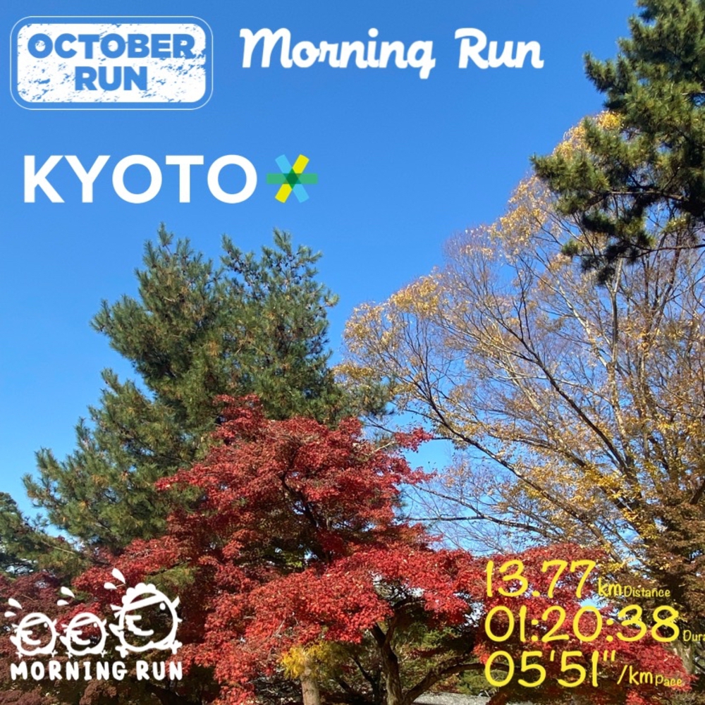 インストール快晴、紅葉、早朝と気もちのいい朝ランです♪ 北山から西賀茂に向かいゆるっと鴨川の上流に登った帰りは、 リラックスしてゆっくり降りてきます 今日は御苑の森でゴールにして 紅葉🍁の撮影会としました