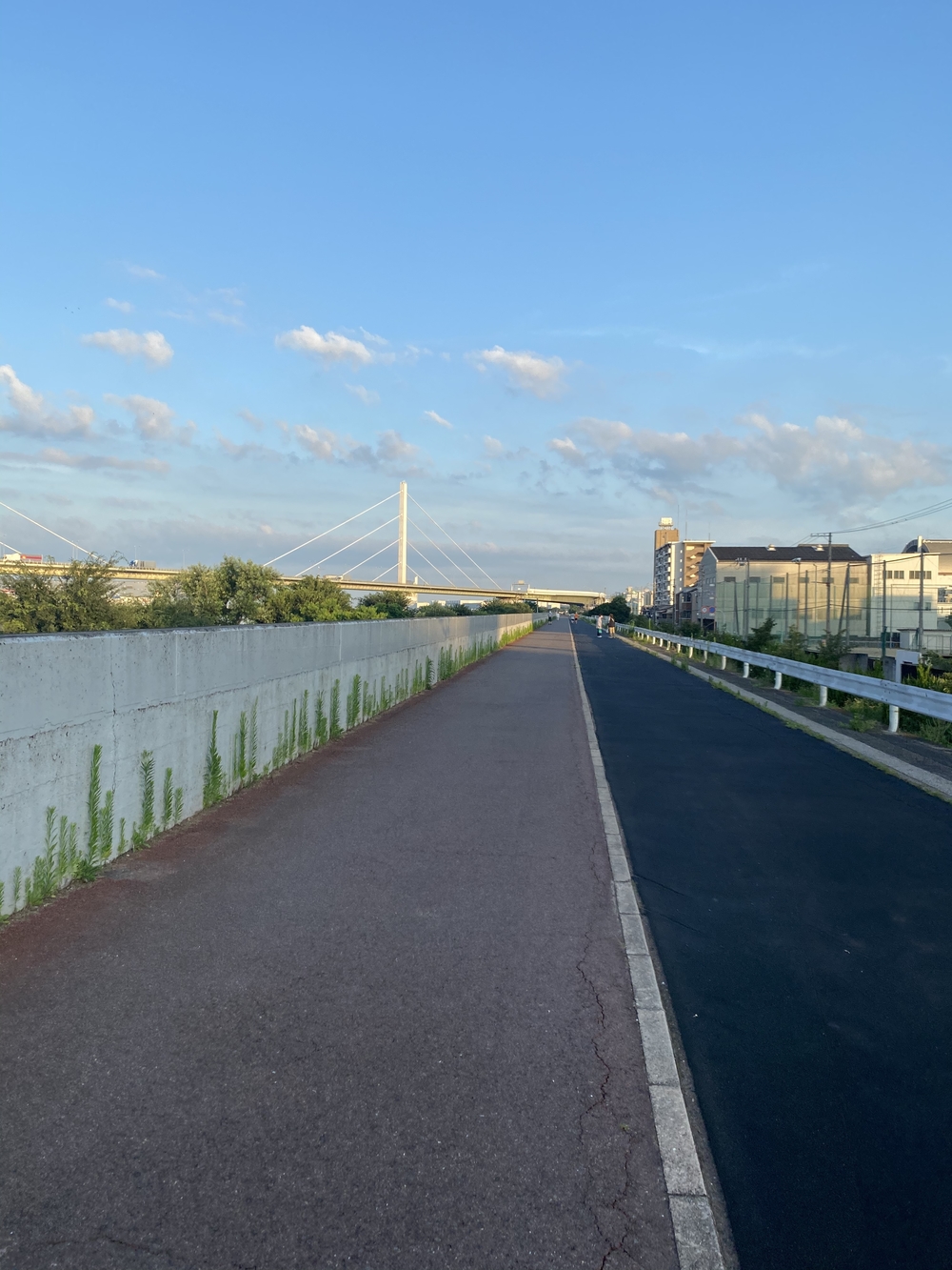 かもめ大橋から大和川の始まり0km地点まではトラックターミナルの並ぶ道です。 時々、歩道は街路樹があって狭いところがあります。トラックの出入りもありますが、そこまで多くはないです。信号はなし。 大和川の始まりから国道26号線まではランニング用に舗装されていますので快適です。オススメは国道26号線まで残り2キロほどのところに河川敷に降りる道があります。少しだけ砂利道ですが、すぐにコンクリートの道になるので、そこからしばらくは舗装されています。 途中、チンチン電車の高架下周辺は再度未舗装の箇所が200メートル程あり。 そのあとは近鉄電車の高架下まではずっと舗装されています。10km程のコースで信号なし、人もまばらです。 早朝は真夏でも涼しいですが、たまに風の強い日があります。海に近づくほど海風があるので、向かい風になった時は辛いです。 真夏の日中は遮るものがなく太陽が降り注ぐので暑い上に、川の臭い匂いが… 逆に真冬の早朝は寒すぎて危険です。 家が近所にあればいいですが、無ければ住之江のスパスミノエ、住吉区の錦温泉、東住吉区の矢田温泉がオススメ。 トイレはないです。どうしても、無理な時はコンビニを探しましょう。 大和川終わりからかもめ大橋まではコンビニが数店あります。それ以外は大和川から離れないとないです。 早春から梅雨にかけては色々な花が咲くので、季節の移ろいを感じることができます。 釣りをしている人、楽器を奏でている人、河川敷で寝ている人など長閑な風景の中走ることができます。